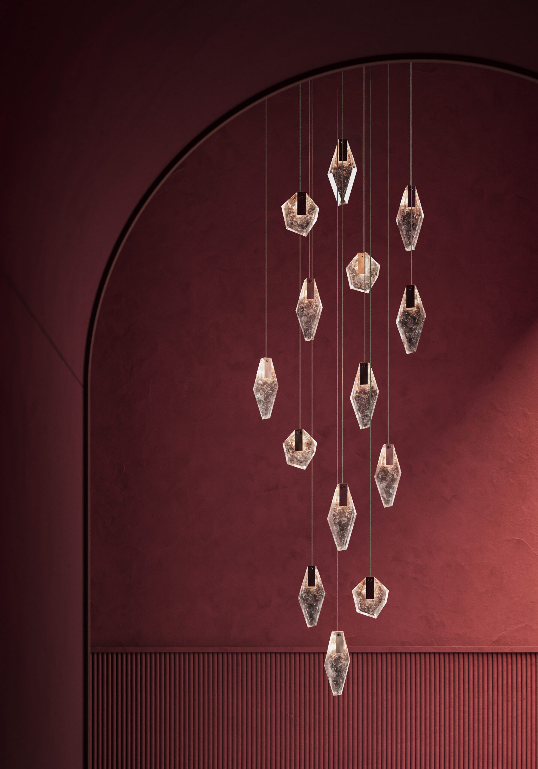 Každé svítidlo je dokladem oddanosti značky Bomma výjimečnému českému sklářskému řemeslu, jež propojuje tradiční mistrovství s moderním designem. Ručně foukaný křišťál v kombinaci s vytříbenými detaily proměňuje každý objekt v nadčasový šperk současného interiéru.