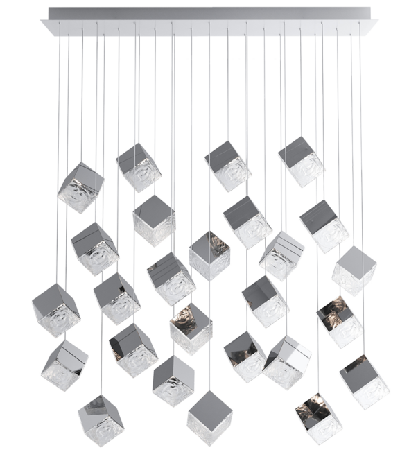 materiál: ručně foukané křišťálové svítidlo s leštěným kovovým komponentem