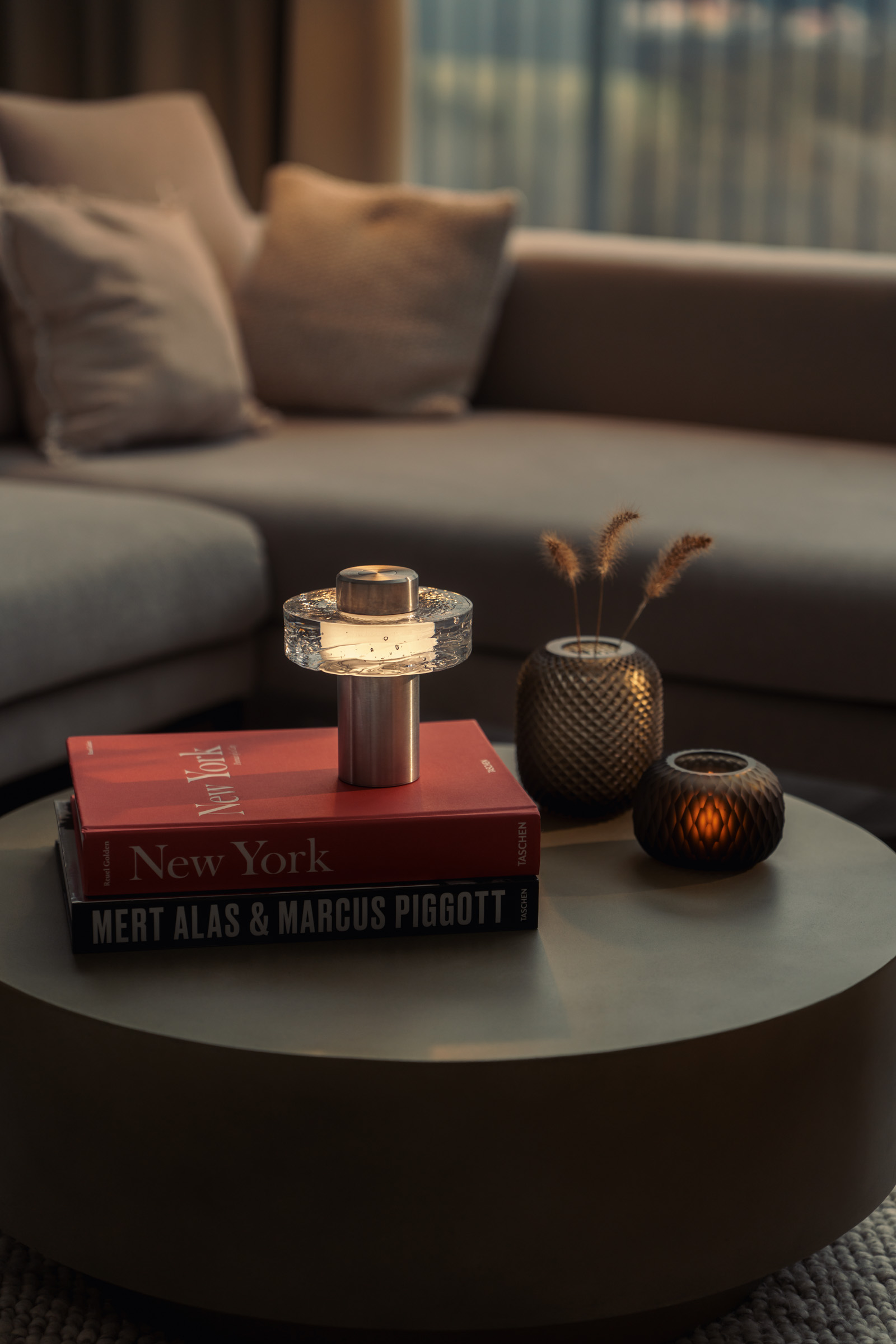 Díky pevné kovové základně a nezaměnitelnému jádru z texturovaného skla dodá tato lampička dotek rafinovaného řemesla jakémukoli prostoru – ať už stojí na poličce, nočním stolku, nebo vedle vašeho oblíbeného křesla na čtení. Ollo je navrženo tak, aby podpořilo atmosféru každého interiéru. Disponuje intuitivním dotykovým ovládáním, které vám umožní snadno nastavit intenzitu i teplotu světla. Tato variabilita vám zaručí, že si můžete vytvořit dokonalou intimní atmosféru přesně na míru danému okamžiku, ať už jste kdekoli.