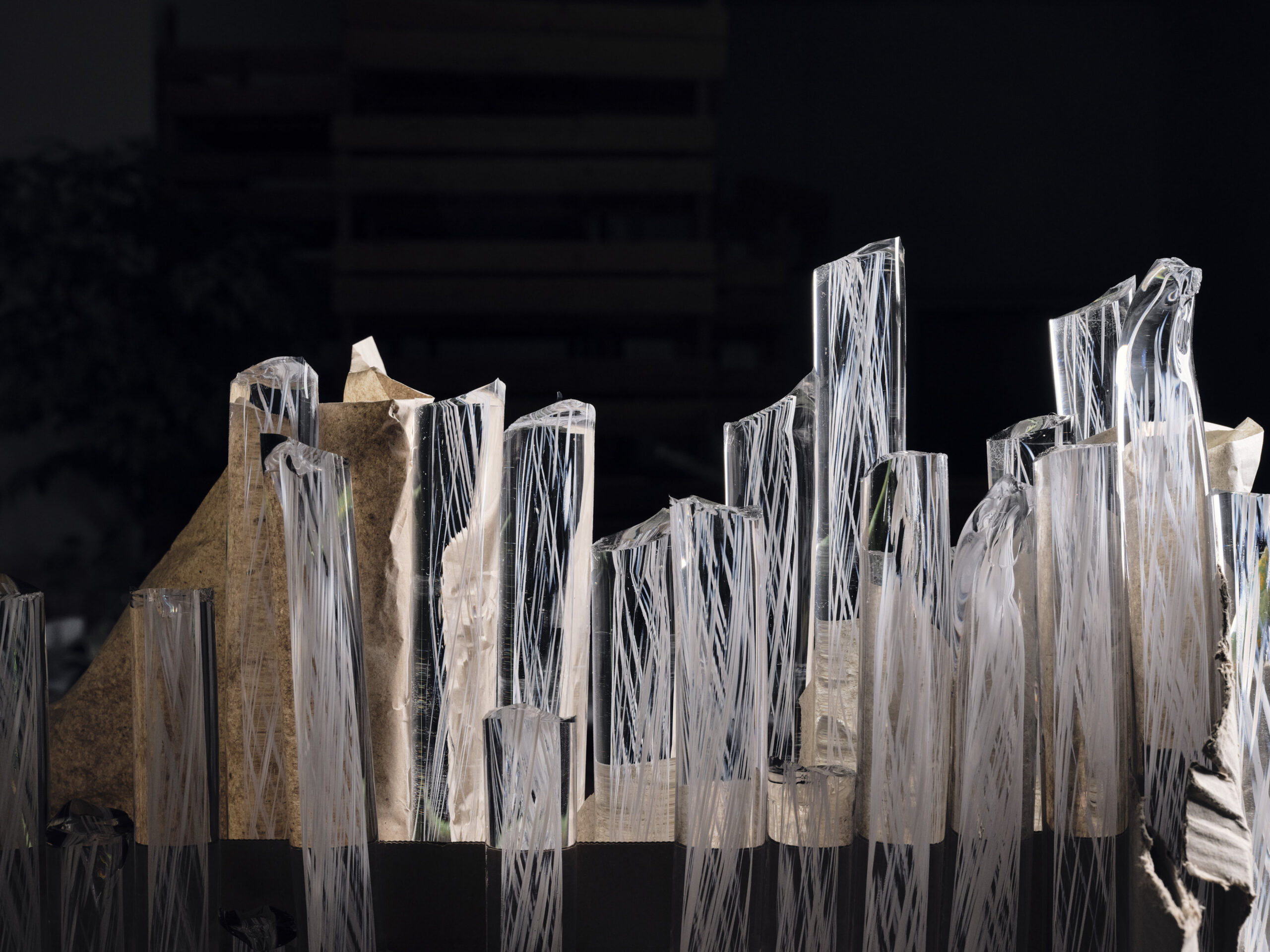 The Flare collection includes crystal glass rods in three shapes, one perfectly straight and two bent in varying degrees. They can be infinitely combined to create custom installations.