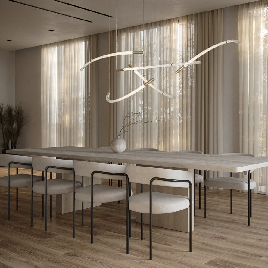 “The Flare luminaire is inspired by the phenomenon of light itself, craft and traditional glassmaking techniques, as well as the need to create a luminaire that offers a wide variety of compositions and space solutions. It is based on the form and character of the flare, creating lines of light and glimpses in space.”