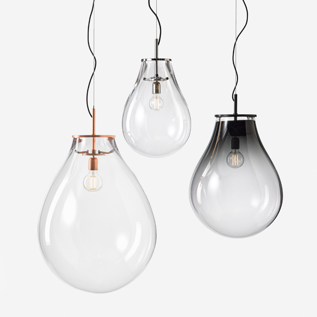 The inspiration for this unique collection was a collaboration with the world-renowned director Tim Burton, during one of his exhibitions. The Tim Collection was among our earliest efforts, based on the shapes of the glass cloches covering Burton’s artworks. These monumental pieces marked BOMMA’s entry to the world of top-level lighting design and set us on our path. Free-blown glass without the use of a form, literally reaches the limits of this size and weight. Unique in the world-wide scale, these lights combine minimalistic design with the greatest examples of glassmaking mastery.