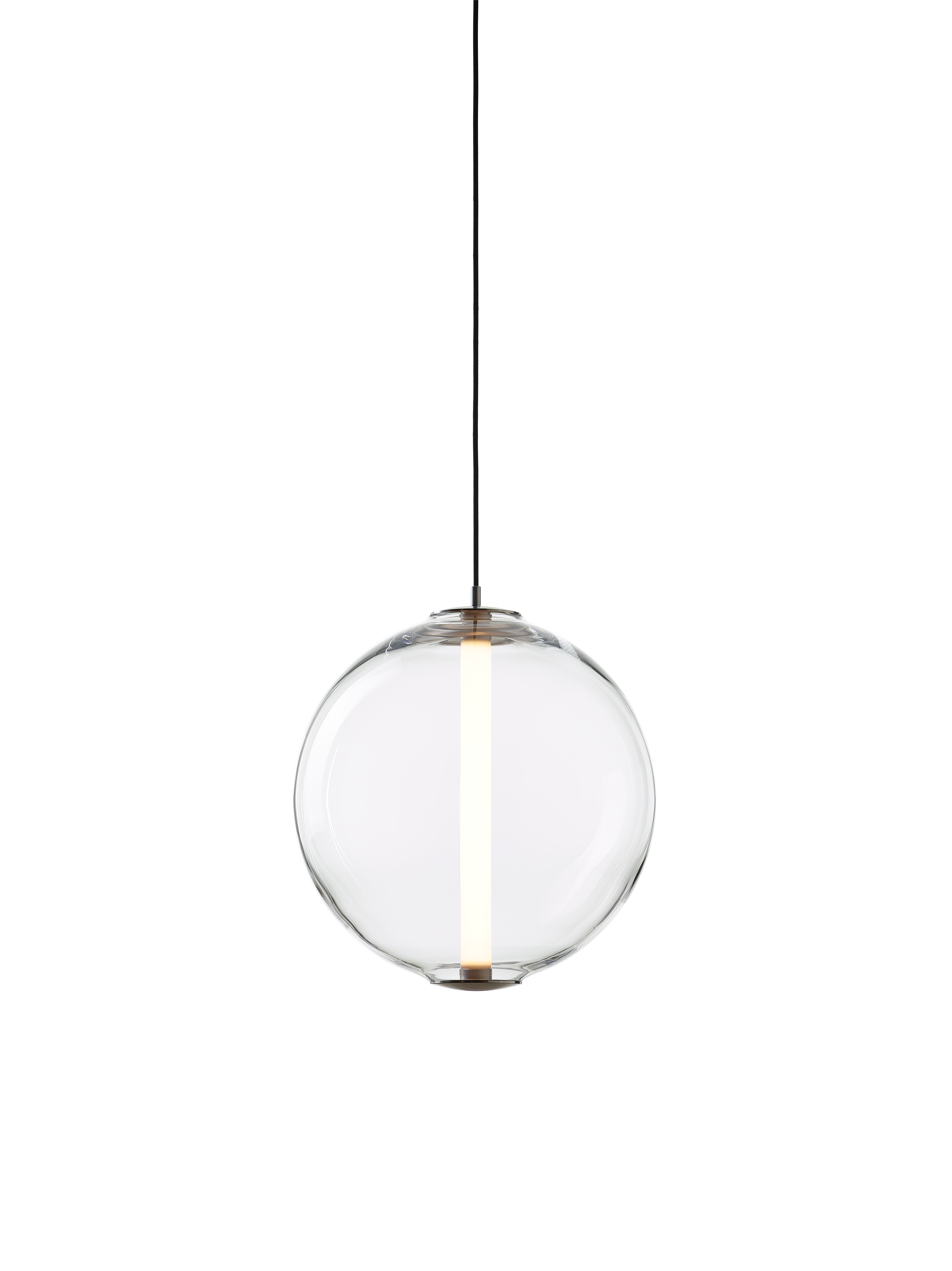 The Buoy Collection was designed by Václav Mlynář, Creative Director of BOMMA. He found inspiration in the concept of buoys as orientation points that guide sailors day and night. His hand-blown crystal lights feature unusual light rods that run through the entire core formed by a monumental glass body. As Václav Mlynář explains: