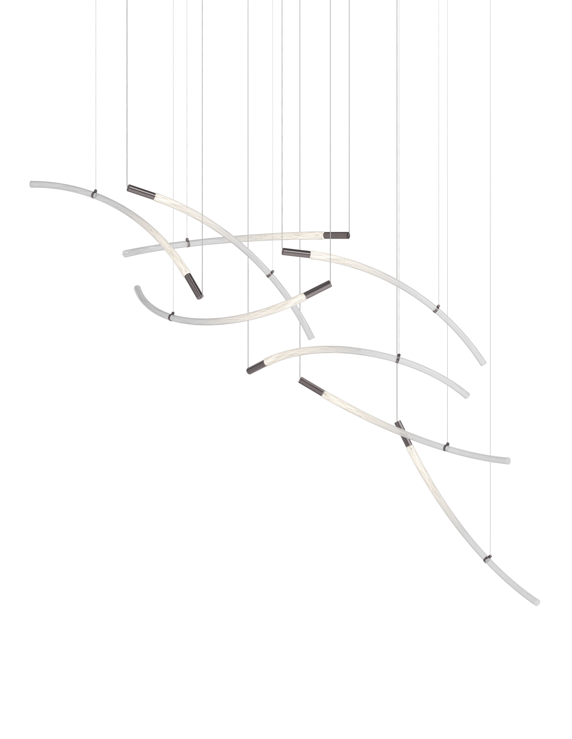 “The Flare luminaire is inspired by the phenomenon of light itself, craft and traditional glassmaking techniques, as well as the need to create a luminaire that offers a wide variety of compositions and space solutions. It is based on the form and character of the flare, creating lines of light and glimpses in space.”