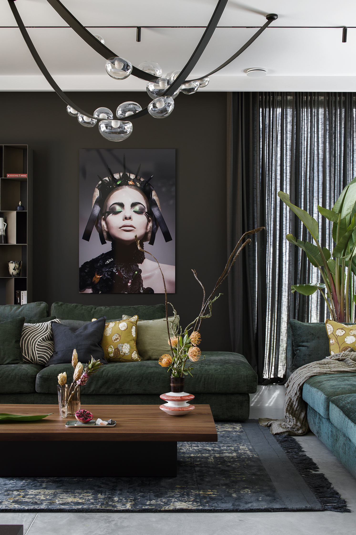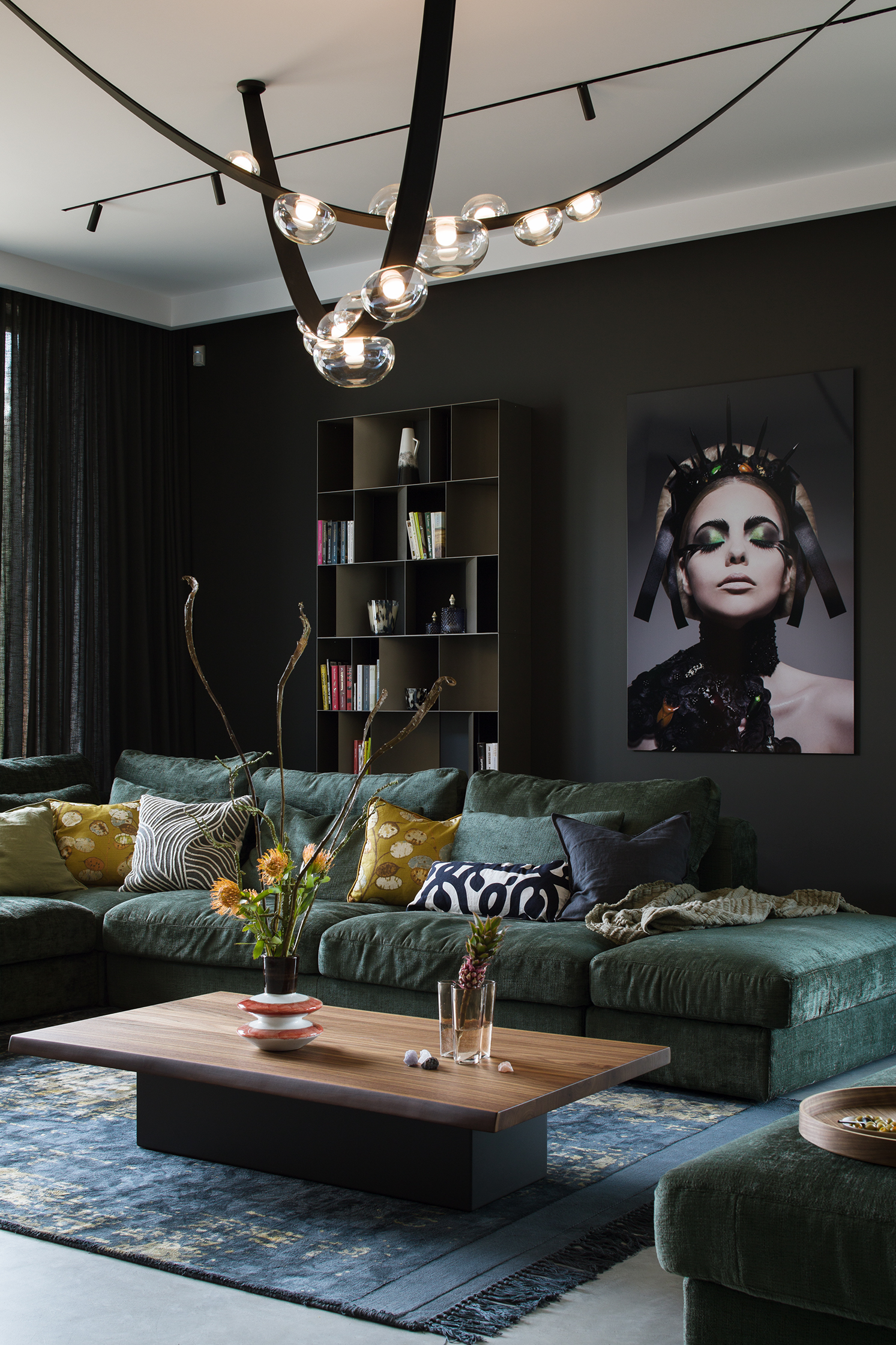 Installation of 2 Dew Drops pendants in black leather in private residence by MUM Studio.