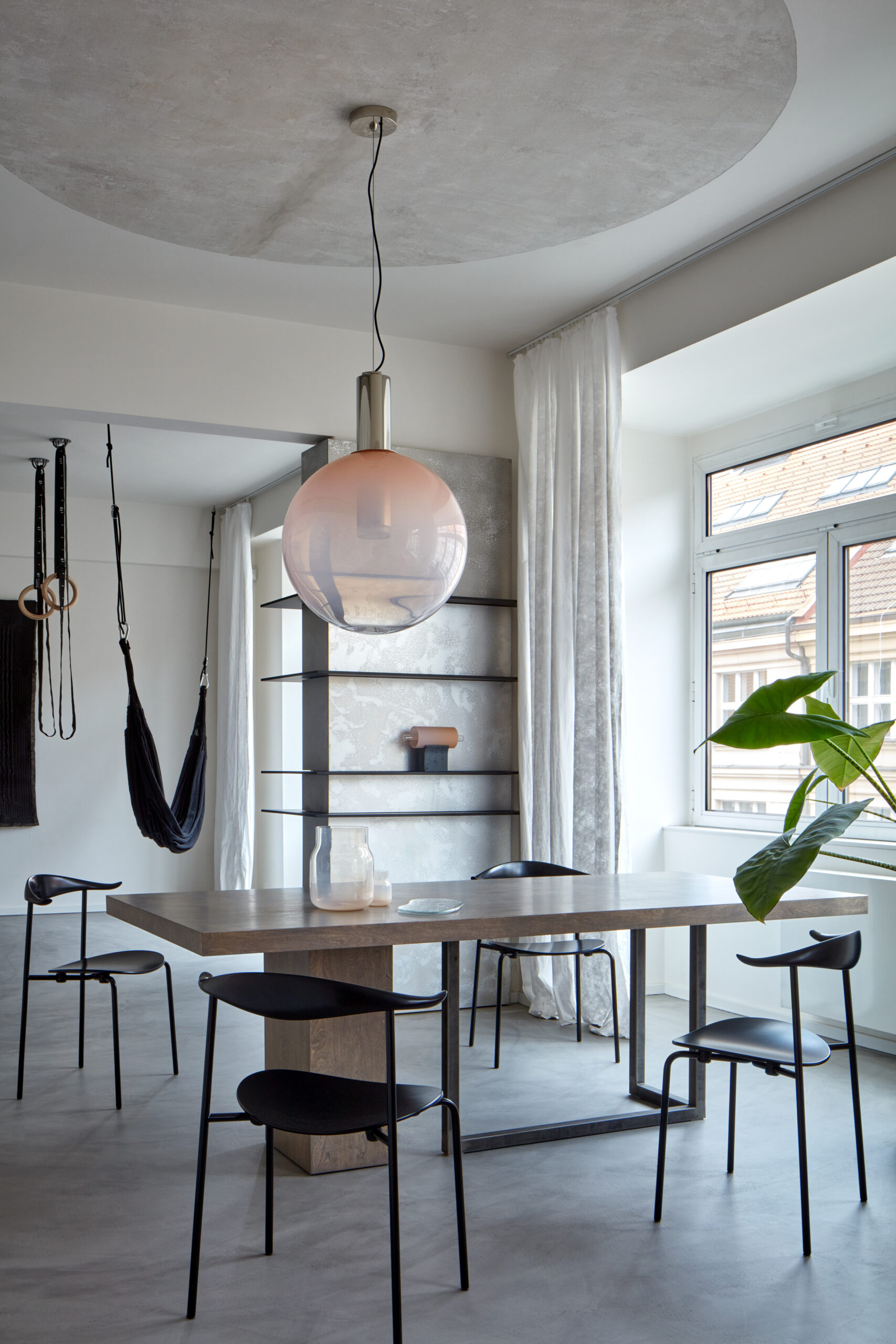 The concept of the apartment renovation by Malfinio was based on three elements: space, light and solitaires in it. The handmade sculptural pendant from the Phenomena collection fits perfectly into this concept as an eye-catching piece above the dining table.