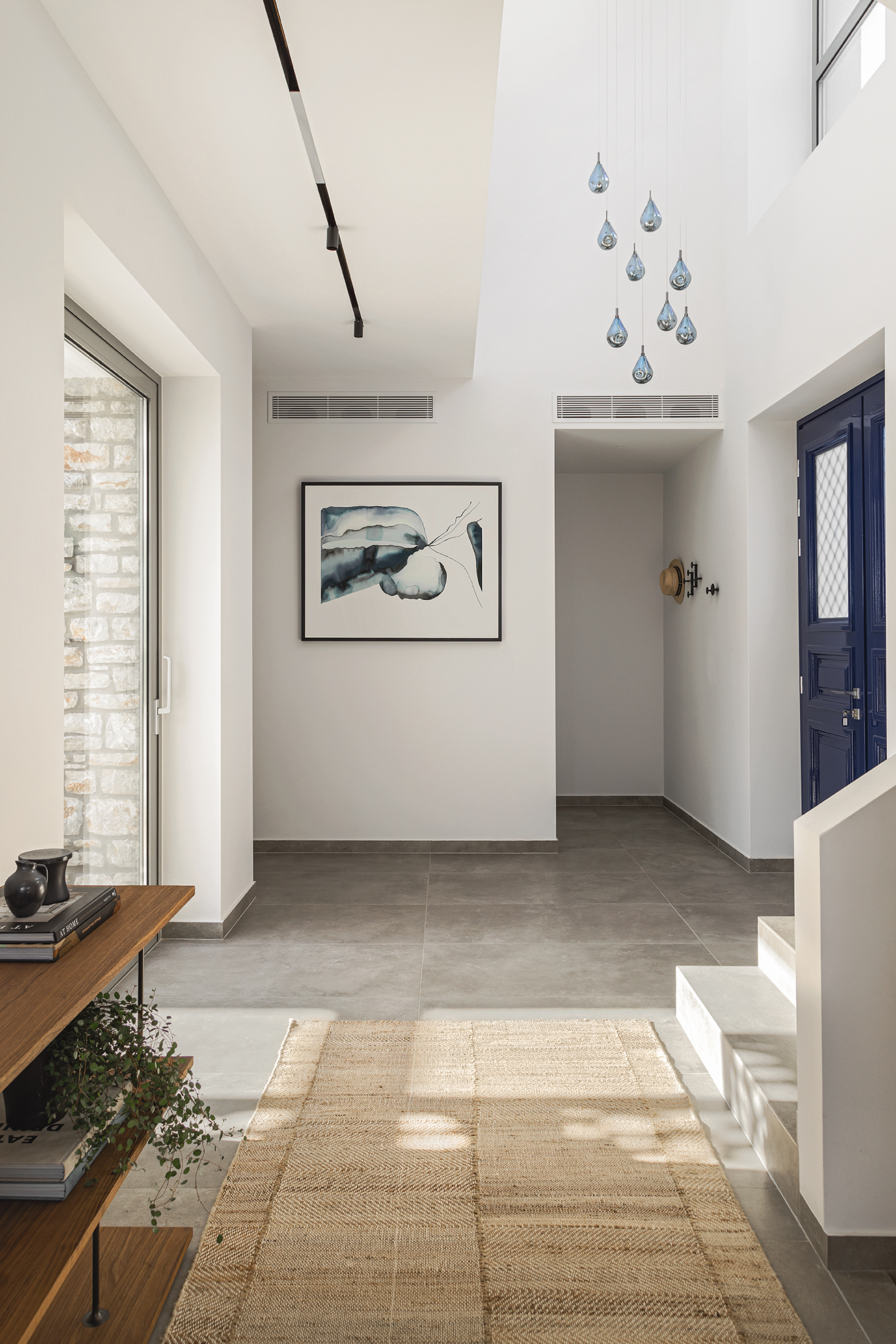 Mediterranean project by BOX INTERIORS with dominant dark blue doors complemented with BOMMA luminaires from the Soap mini collection.